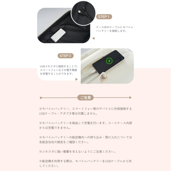 USBとTYPE-Cの2種類充電ポートが搭載されており、外出先でもスマートフォンやタブレットなどの電子機器を快適に充電することができます。