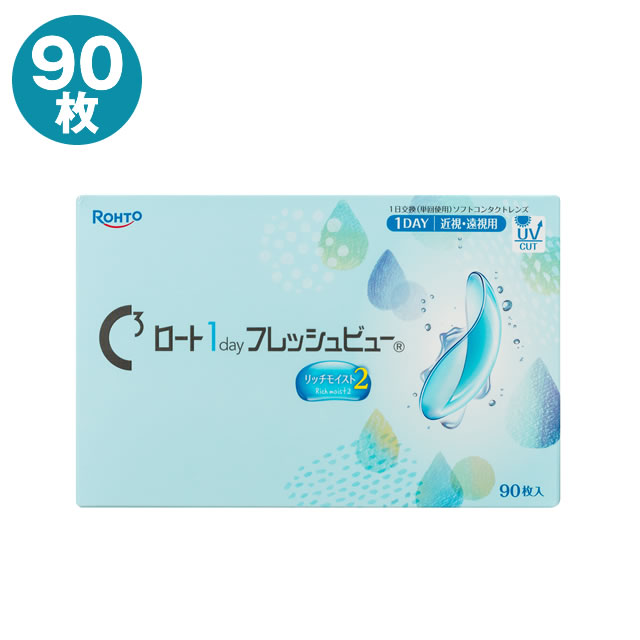 ワンデーフレッシュビューリッチモイスト2 90枚入×1箱 ◆ 酸素透過率1Dk/t値25 酸素流量率88% 含水率58% UVプロテクト 1day 1日使い捨て クリアコンタクト コンタクトレンズ ◆