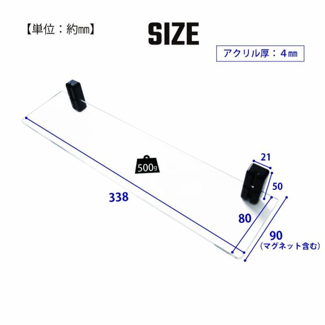 マグネット アクリル棚 338mm マグリルシェルフ用 推し活収納 アクリルスタンド フィギュア 壁掛け ディスプレイケース 透明棚 飾り棚 コレクションケース コレクションラック 日本製