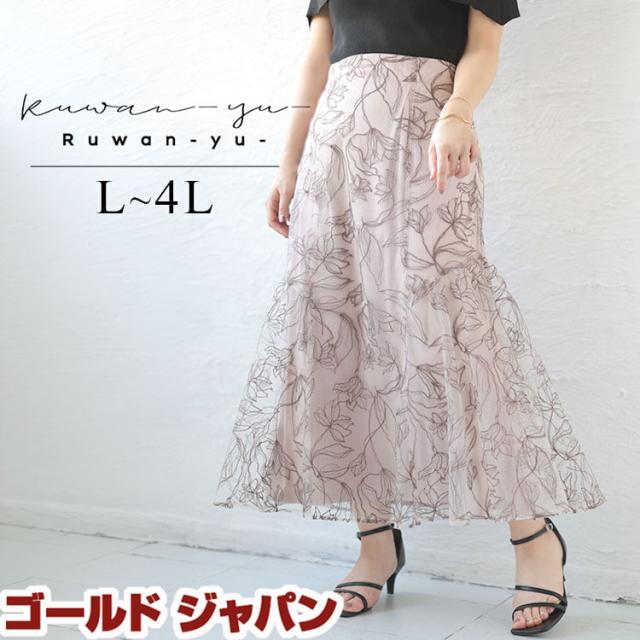 春新作 大きいサイズ レディース ボトムス スカート チュール刺繍フラワーフレアスカート ロングスカート ロンスカ フレアスカート ロング 花柄 フレア ウエストゴム マーメイド きれいめ ゆったり 夏服 秋服 L LL 2L 3L 4L ピンク ゴールドジャパン ルワンユー ruwanyu