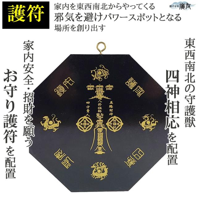 - ● 裏面の四神相応: 東(龍)、西(白虎)、南(朱雀)、北(玄武)を配置。あらゆる運気が上がるとされる「パワースポット」のような最高の環境を作り出します。