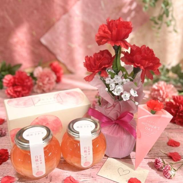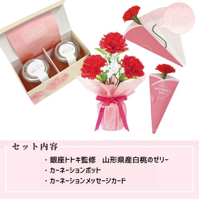 母の日 早割 お菓子 カーネーション 即日発送 ギフト プレゼント 翌日配達 送料無料 銀座トトキ監修 山形県産白桃のゼリー【2個】【当日出荷】お花とスイーツのセット 30代 40代 50代 ははのひ 贈り物 2026 ゼリー 桃 もも