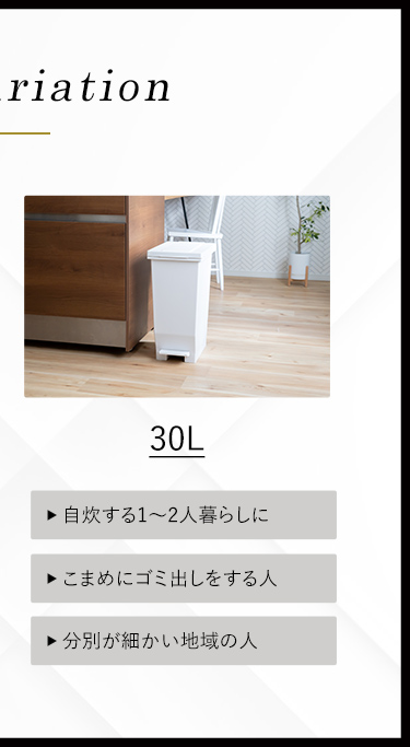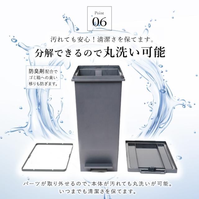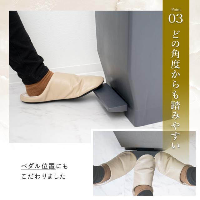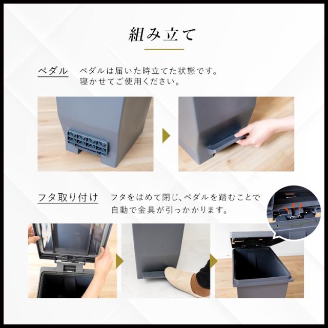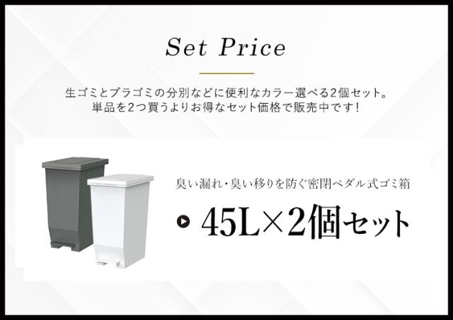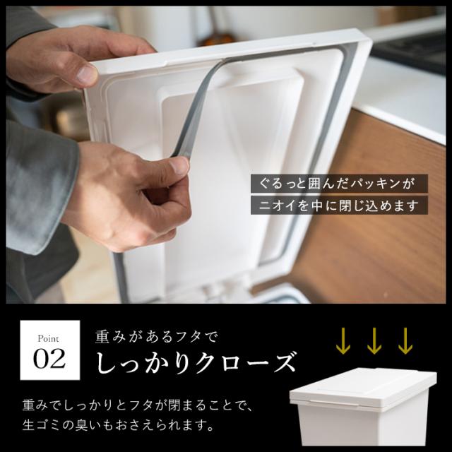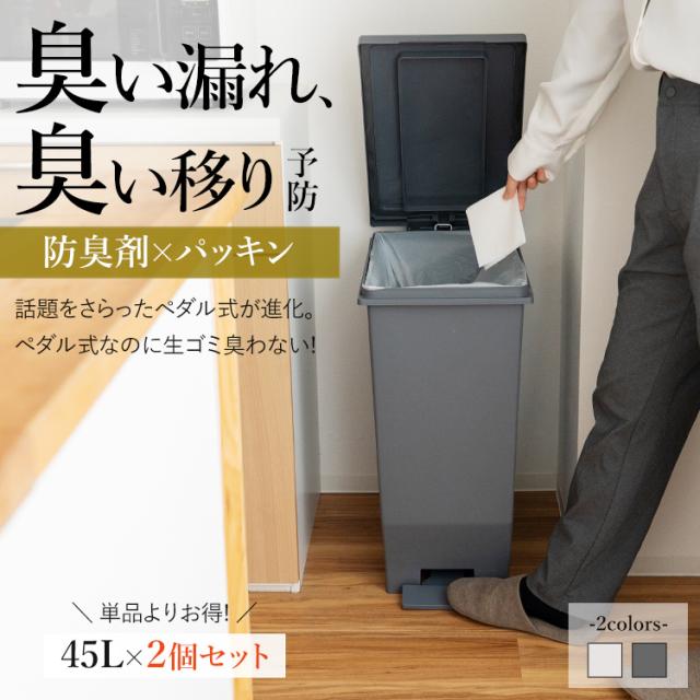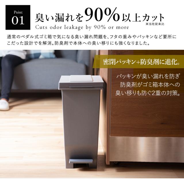 手を使わず、足で開閉できるペダルペール。臭いもれを防ぐパッキン付きで生ごみを捨てても安心です。本体への臭い移りを防ぐ防臭剤配合のネット販売限定モデル。スリム設計で分別にも最適。ゴミ袋をセットできる袋止め付き。キッチンにぴったりのスリムサイズ(30リットル )のお得な2個セットです。