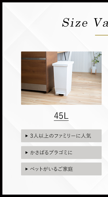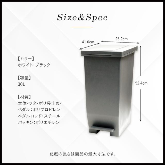 材質 : フタ・本体・袋止め・ペダル=ポリプロピレン ペダルロッド=スチール(クロームメッキ) パッキン=ポリエチレン