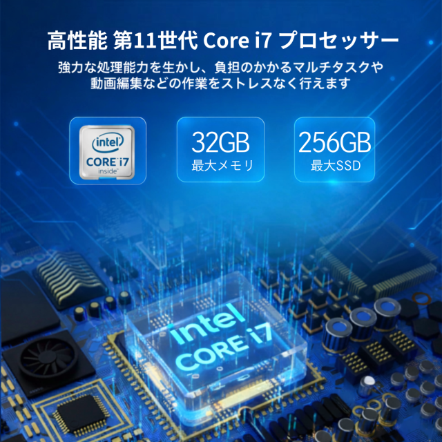 | CPU | Intel Core i7 第11世代 高性能CPU(ビジネス・在宅ワーク・学習用途に最適) |