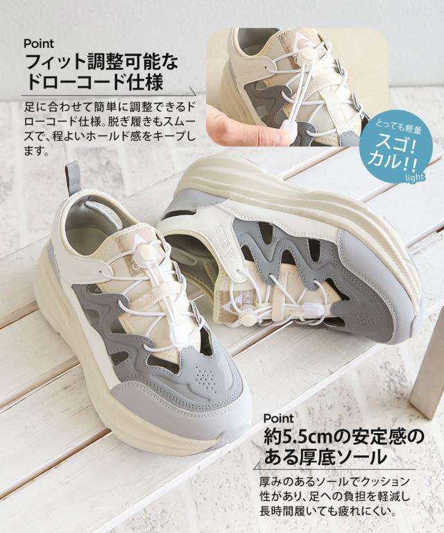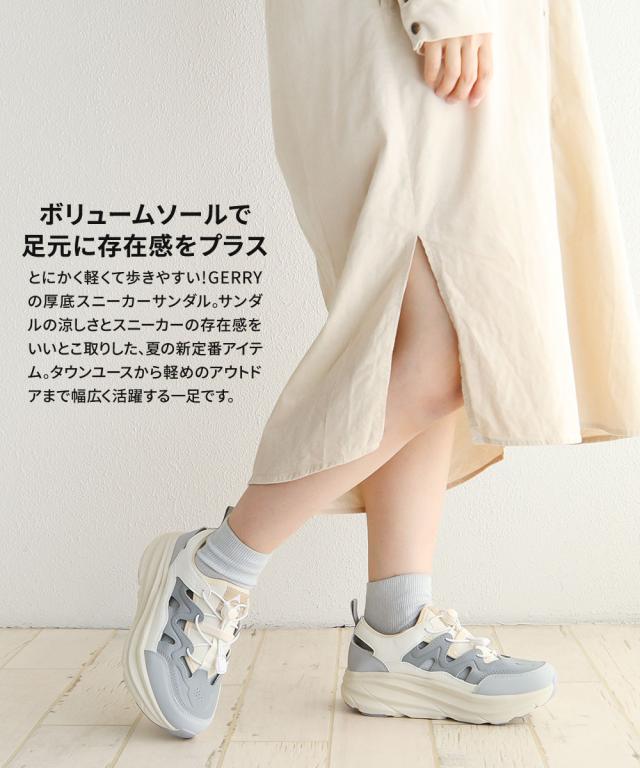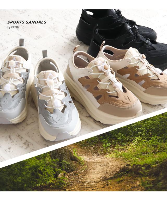 gerry ジェリー スポーツサンダル 厚底 レディース 厚底サンダル 歩きやすい おしゃれ 軽い 軽量 ボリュームソール ハイソール サイズ調整 クッション性 春 夏 カジュアル シンプル スポーツ アウトドア レジャー スニーカーサンダル 黒 ブラック ベージュ グレー 5601