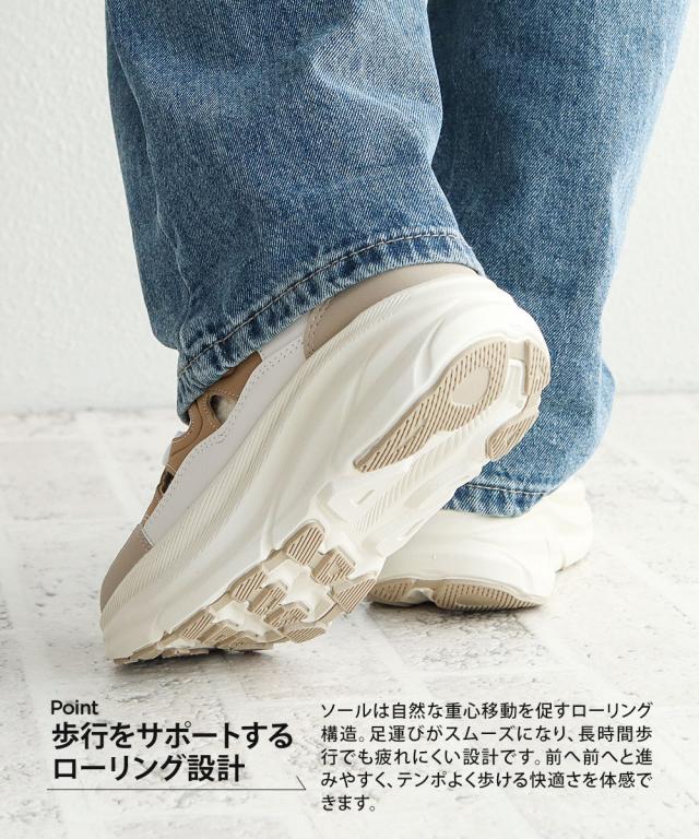 前へ前へと進みやすく、テンポよく歩ける快適さを体感できます。