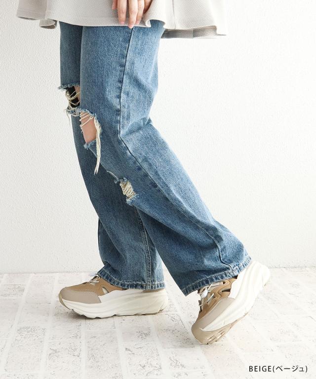 ボリュームのある厚底ソールが自然に脚長シルエットを演出。