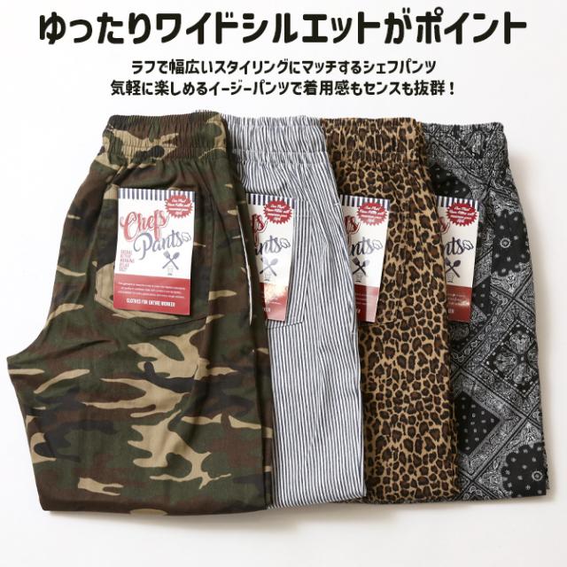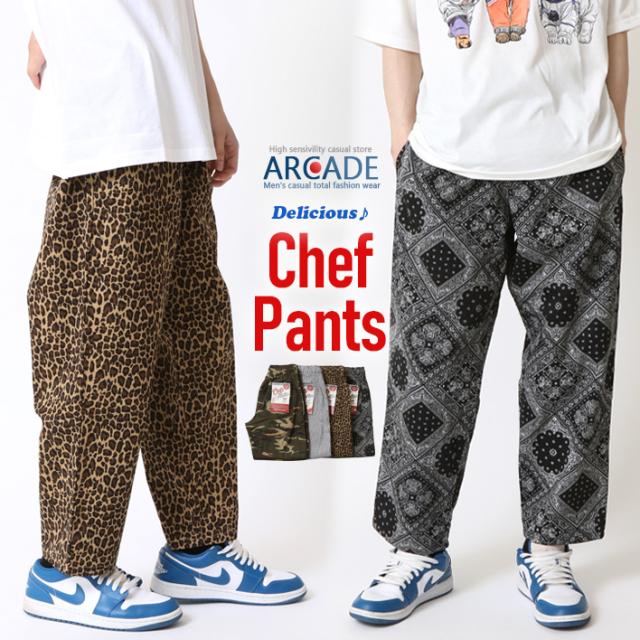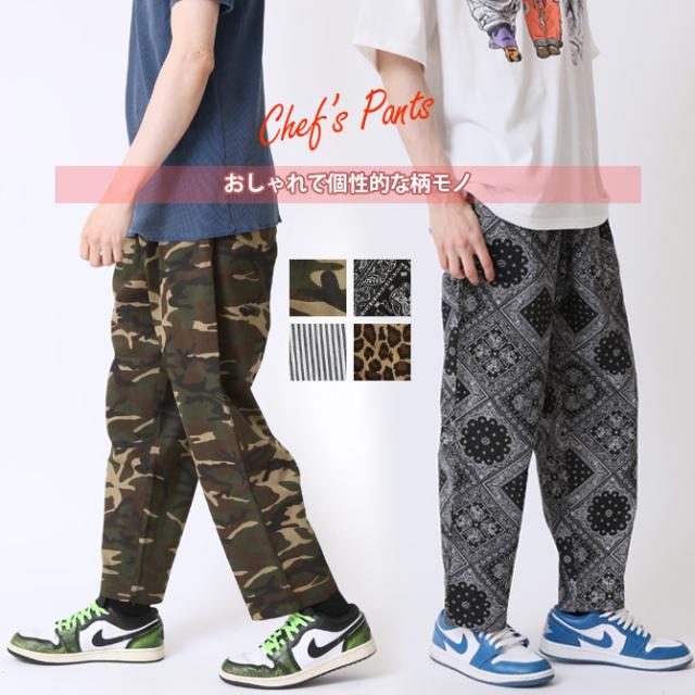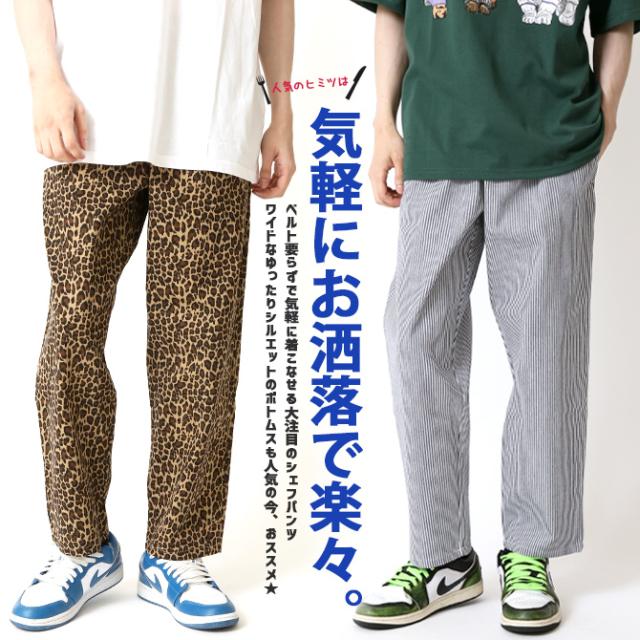 シェフパンツ メンズ 春 夏 新作 中肉素材 ワイドパンツ イージーパンツ チノパン ヒョウ柄 レオパード ストライプ カモフラ柄 迷彩 ワークパンツ コックパンツ 通気性 軽量 春服 春物 ARCADE アーケード