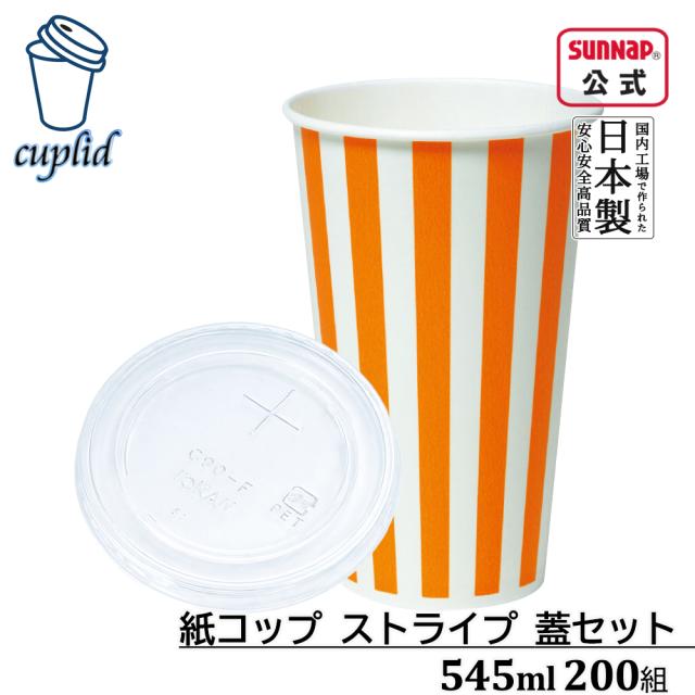 cuplid 紙コップ SCM-545PP ストライプ 545ml 18oz 200組 蓋付 蓋付き 蓋付き紙コップ コールドドリンク ペーパーカップ 日本製