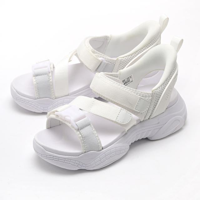 ベルトデザインで足をしっかりホールドしつつ、安定感のある履き心地に。