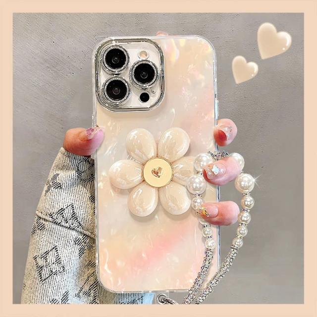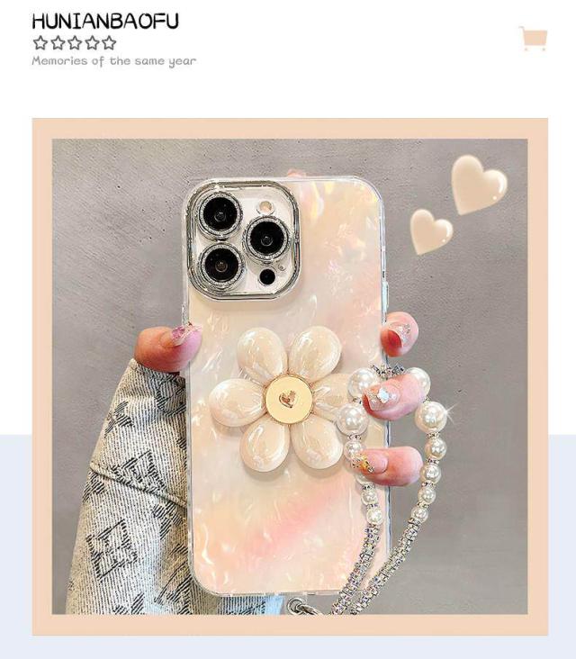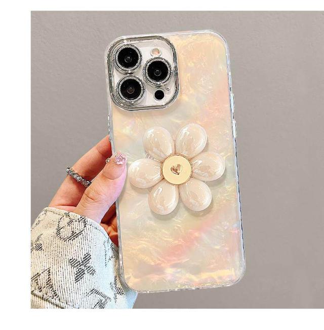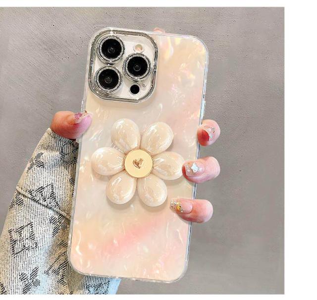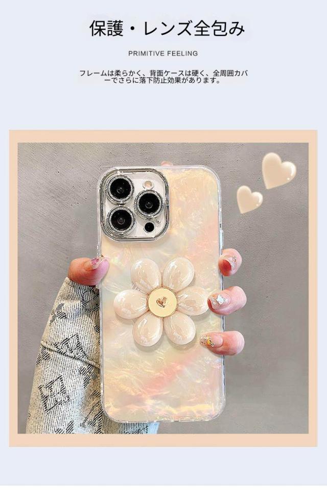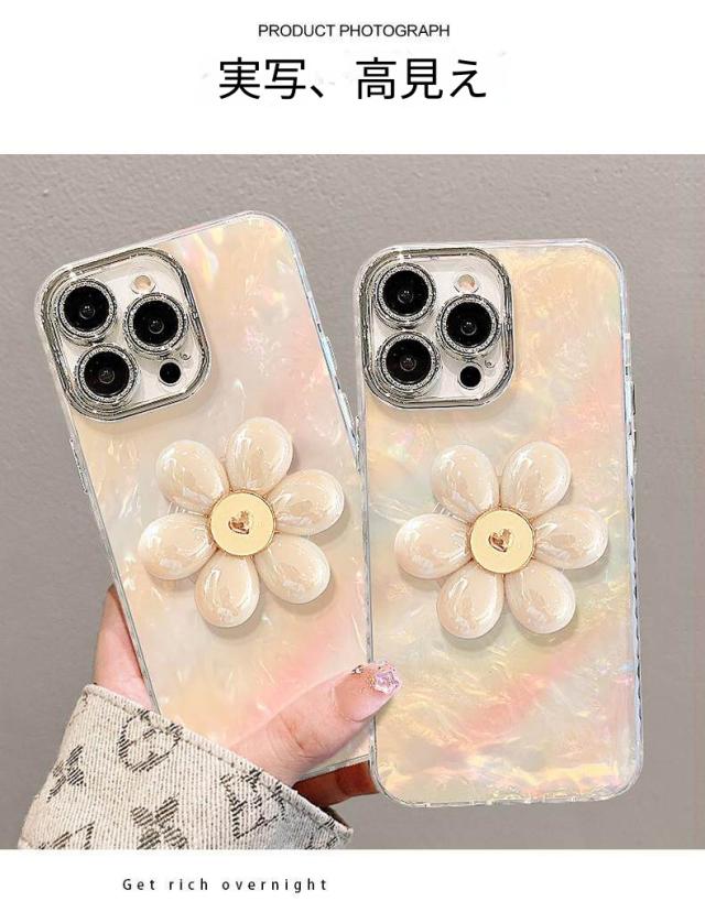 スマホケースぼかし花精孔貝殻紋適用リンゴ16promax携帯ケースホルダー付きiphone15/14/13新型