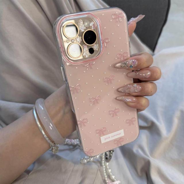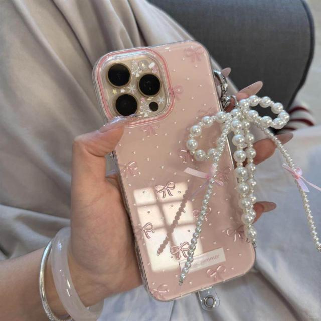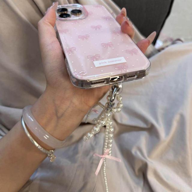 スマホケース韓国系ins少女ファンデーション波点蝶ネクタイ適用iphone16 promaxリンゴ15ケース14新13高級感15pro真珠ペンダント16小衆14promax保護カバー12