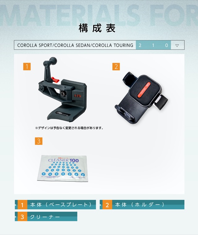 【A/B/Cタイプ】 ・スマートフォンホルダー 本体 (ケーブルホルダー付き) ・車種専用スマートフォンホルダー取付マウント ・クリーナー 【Dタイプ】 ・スマートフォンホルダー 本体 ・車種専用スマートフォンホルダー取付マウント ・クリーナー 【Eタイプ】 ・スマートフォンホルダー 本体 ・車種専用スマートフォンホルダー取付マウント ・充電ケーブル(TYPE-C/TYPE-C) ・クリーナー |