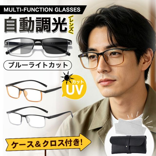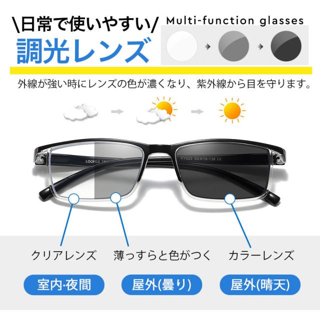 調光サングラス 調光メガネ メンズ UVカット 軽量 ブルーライトカット 調光レンズ 紫外線カット アウトドア 変色 軽量 スポー