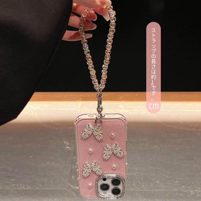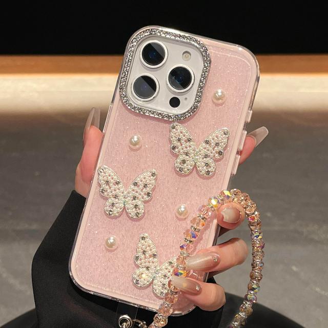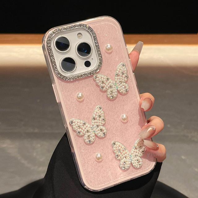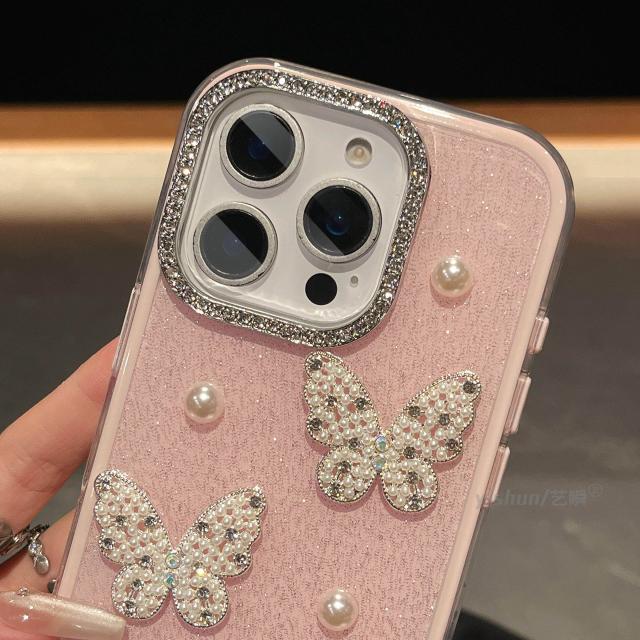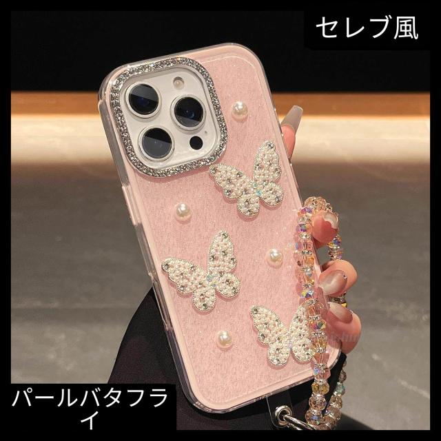 スマホケース 軽贅沢名媛風真珠蝶はリンゴ17promax携帯ケースiphone16/15plusフラッシュ粉14高級感13二合一転倒防止12二重11女性保護カバーを適用している