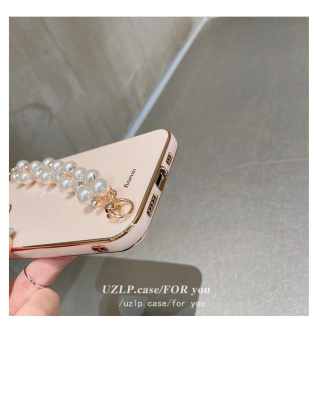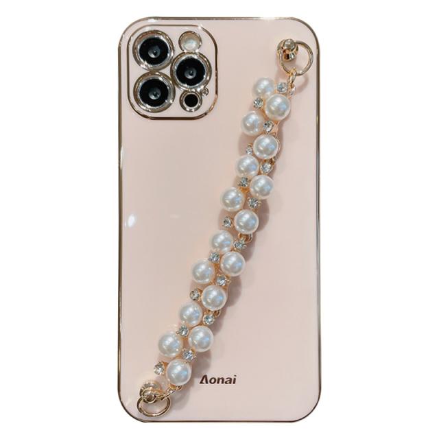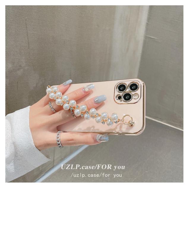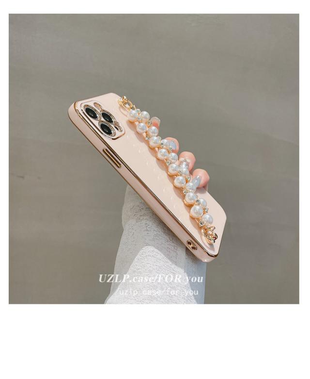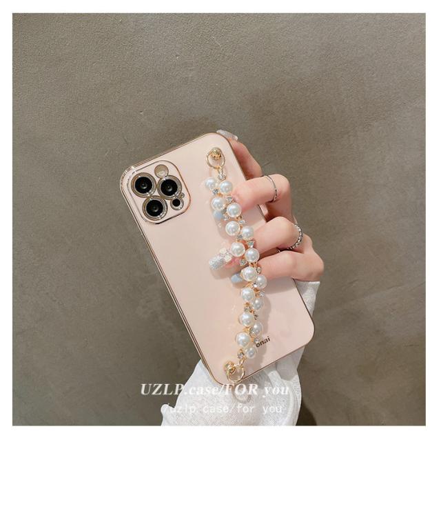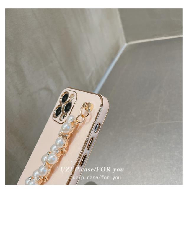 スマホケース メッキ紫色真珠ブレスレットはiphone16携帯ケースの新型15proリンゴ14promaxリンゴ13/12/11ソフトシリコンプラス全包転倒防止高級感保護カバー女性に適用されている