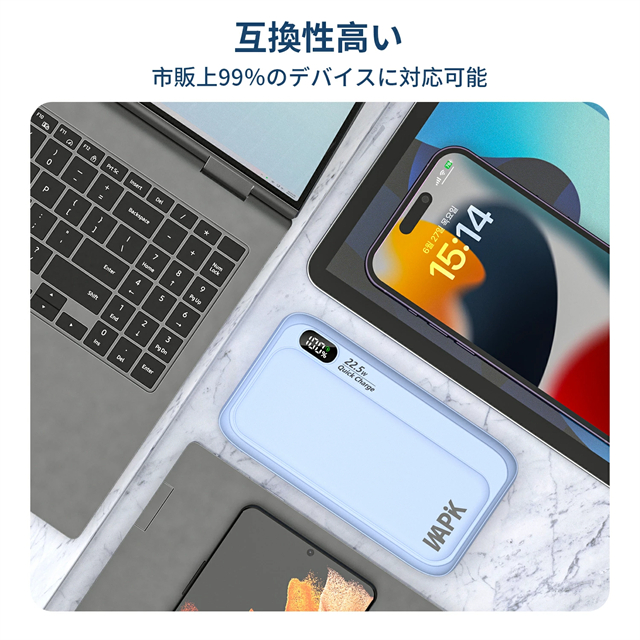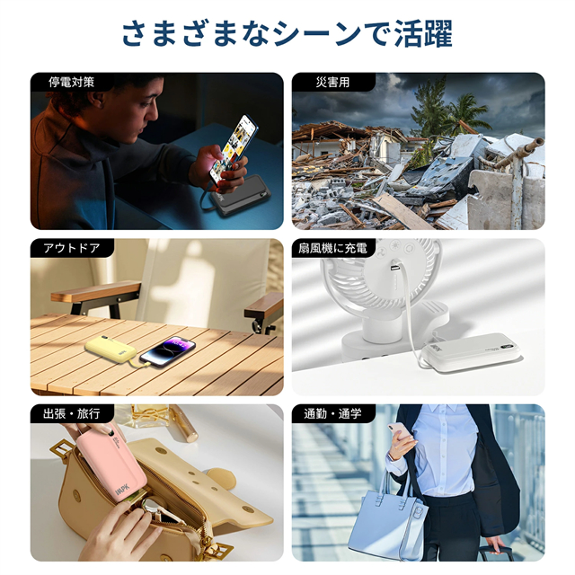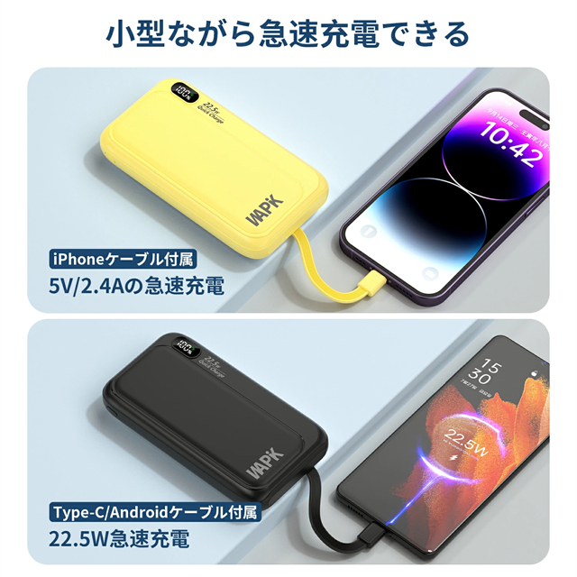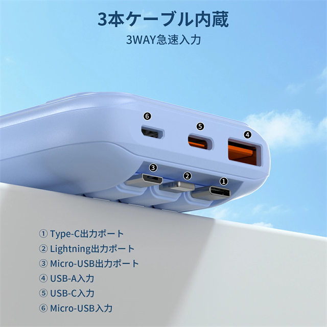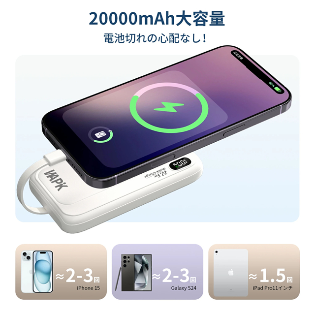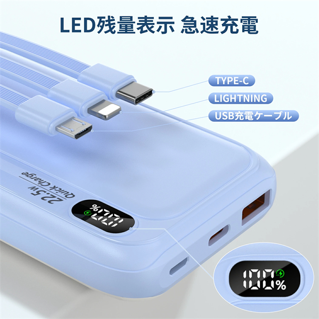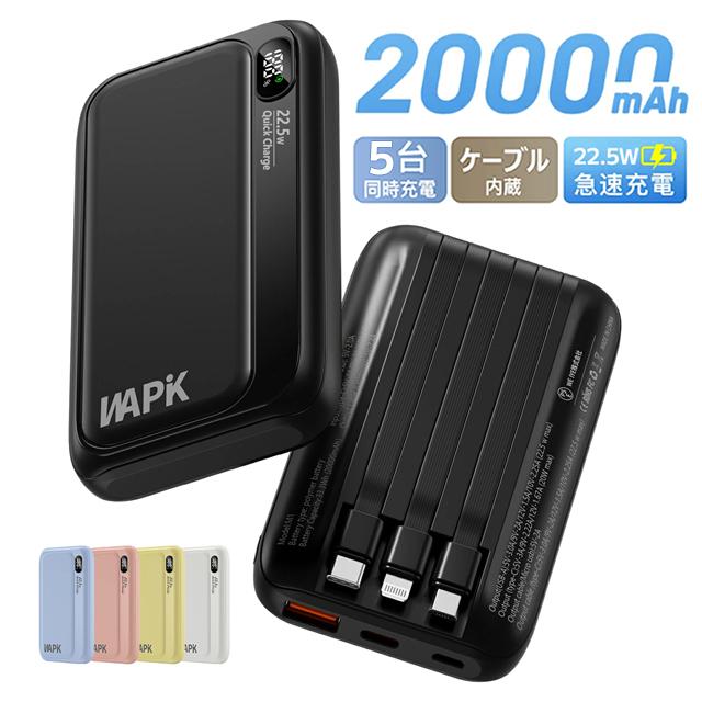 モバイルバッテリー 20000mAh 大容量 5台同時充電 3本ケーブル内蔵 軽量 22.5w急速充電 Type-C LED残量表示 スマホ充電器 iPhone/Android 全機種対応 PSE認証済み 機内持ち込み可 旅行 出張 地震対策 停電 防災