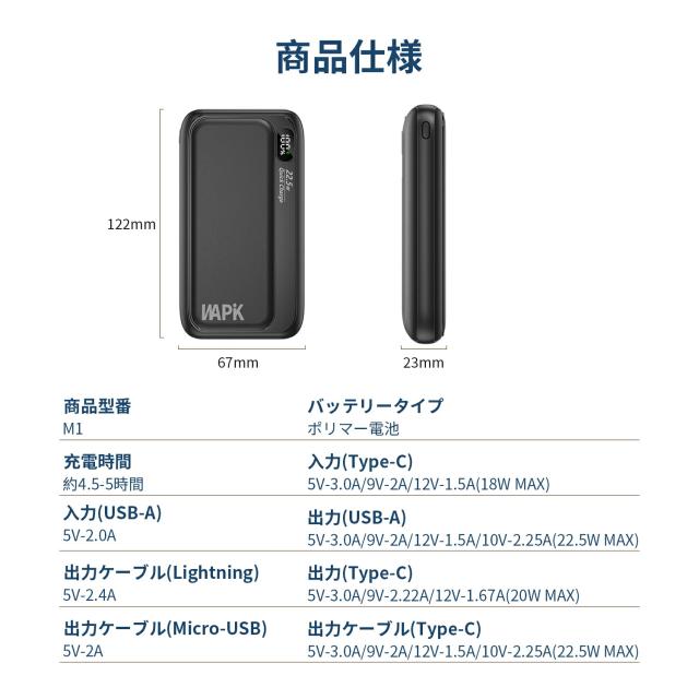 出力:5V-3A(最大22.5w)