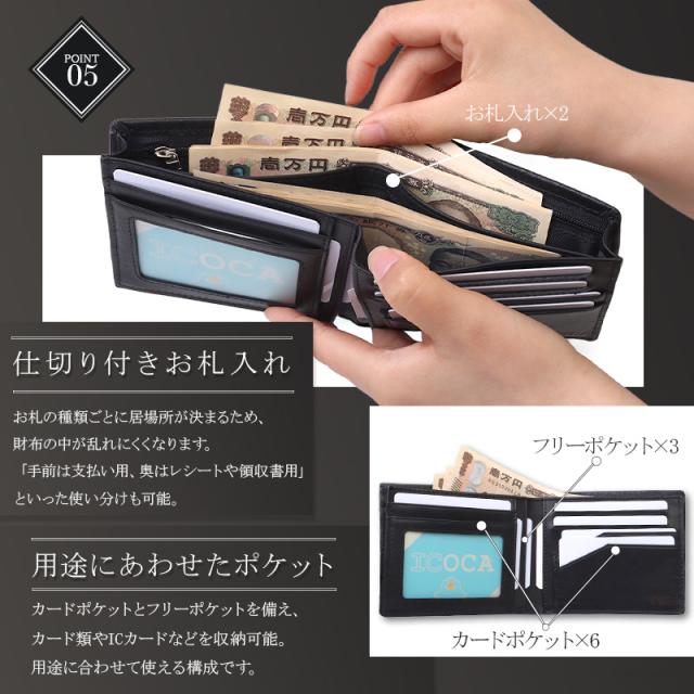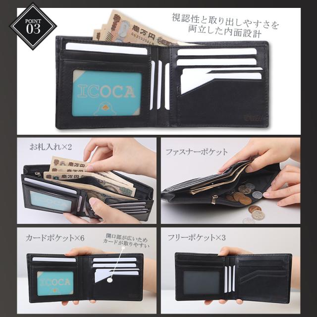 【仕様】札入れ×2、カードポケット×6、フリーポケット×3、ファスナーポケット×1