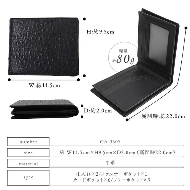 二つ折り財布 メンズ 本革 牛革 オーストリッチ型押し 軽量 札入れ 2層 ファスナー 小銭入れ カード シンプル スリム スマート ブランド GAZIL 【GA-3605】mlb ブランド 人気