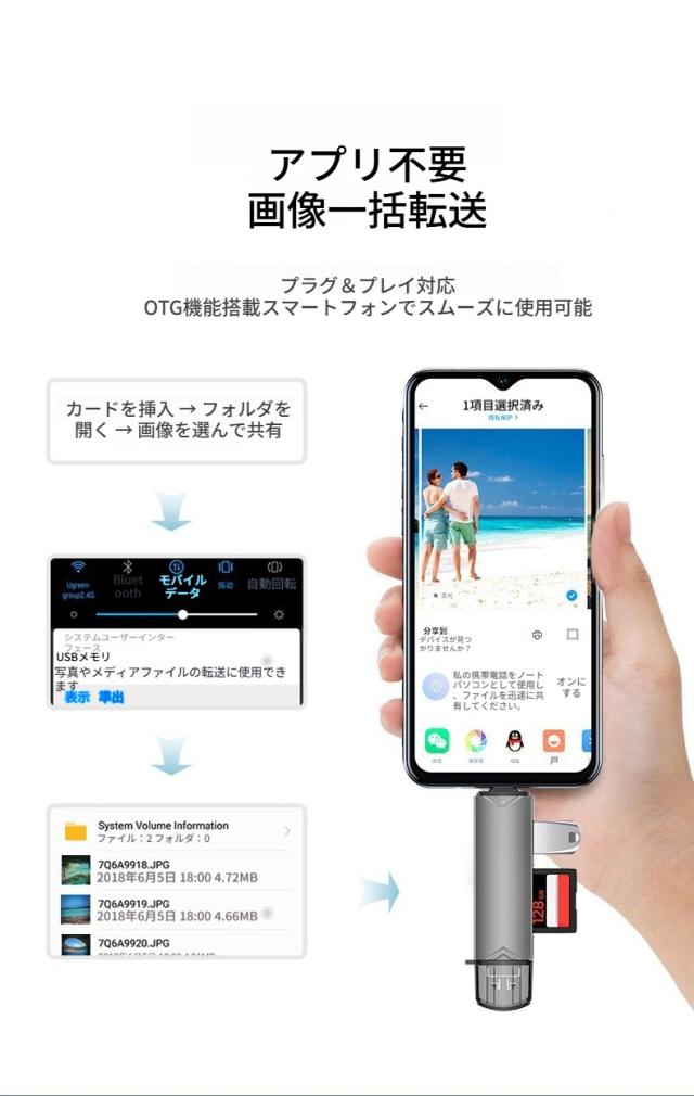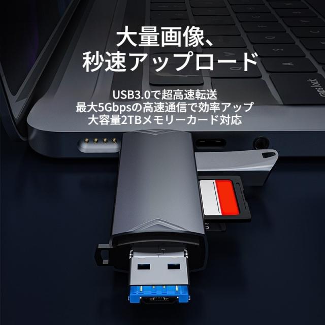 SDカードリーダー Type-C OTG対応 1台2役 USB3.0 SD & TF カードリーダー USB 写真 保存 マイクロSDカードリーダー microSDカードリーダー SDカードカメラリーダー スマホ Androidスマホ タブレット パソコン データー整理