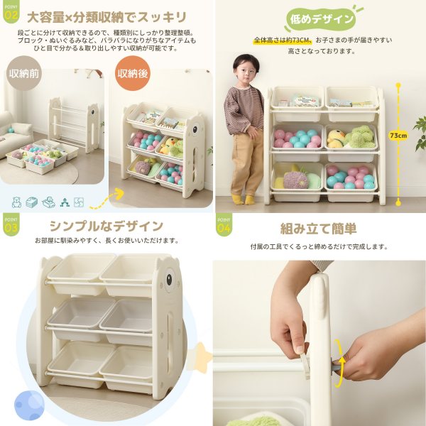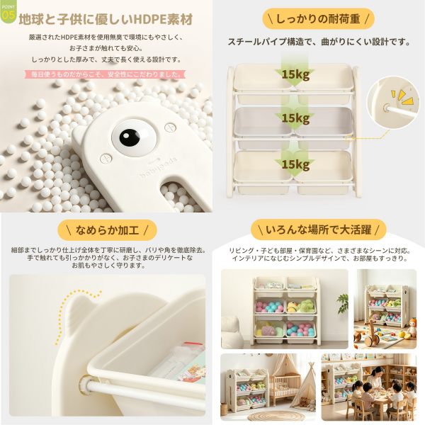 【使用目的又は効果】:おもちゃや本、ぬいぐるみなどの収納。