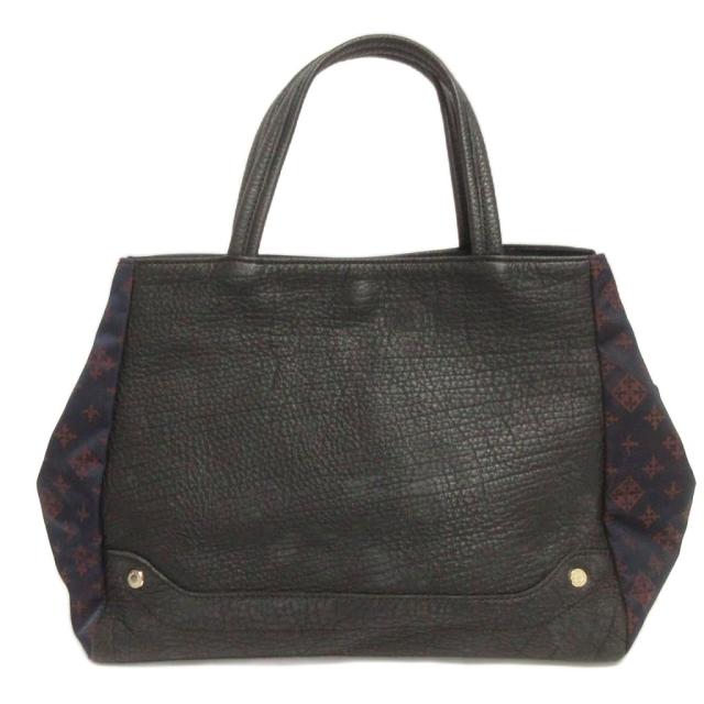 【中古】ラシット RUSSET 松島花コラボ トートバッグ 総柄 レザー 黒 紺 ブラック ネイビー 鞄 ■GY99 レディース