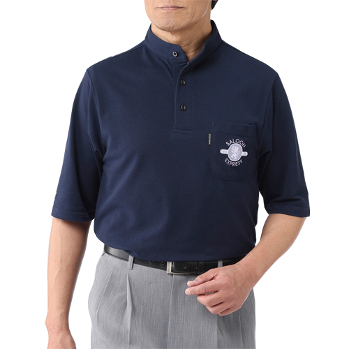 サルーンエクスプレス 鹿の子5分袖プルオーバー 2色組 スタンドカラーシャツ カジュアルシャツ 五分袖 メンズ 紳士服 シニア 男性 大人 無地 ネイビー ホワイト 紺色 白 シンプル 上品 シニアファッション 40代 50代 60代 70代 80代 90代 父の日 お父さん おじいちゃん 春物 夏物 春夏 立て襟 立ち襟 ロゴ 刺繍 ワンポイント 胸ポケット カノコ 綿混 2枚セット