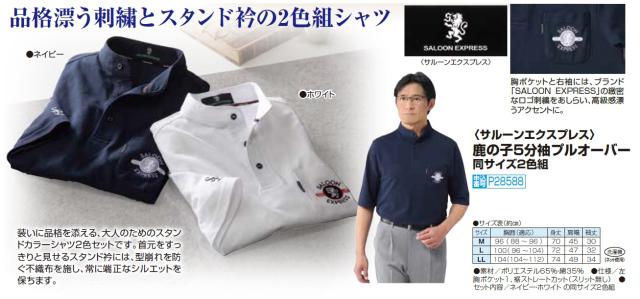 サルーンエクスプレス 鹿の子5分袖プルオーバー 2色組 スタンドカラーシャツ カジュアルシャツ 五分袖 メンズ 紳士服 シニア 男性 大人 無地 ネイビー ホワイト 紺色 白 シンプル 上品 40代 50代 60代 70代 80代 90代 父の日 お父さん 春物 夏物 春夏 sai p28588