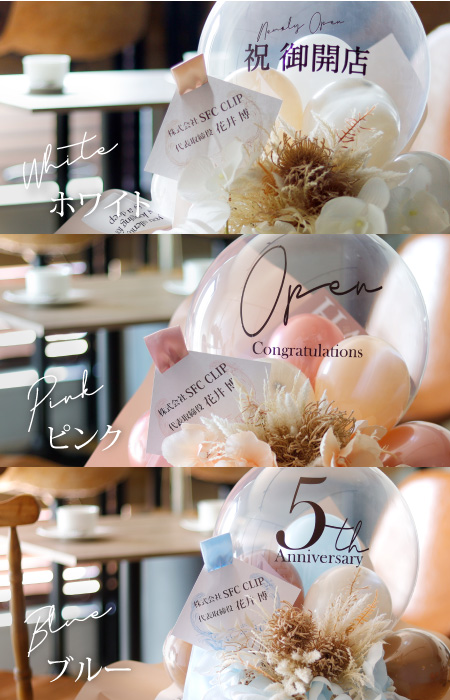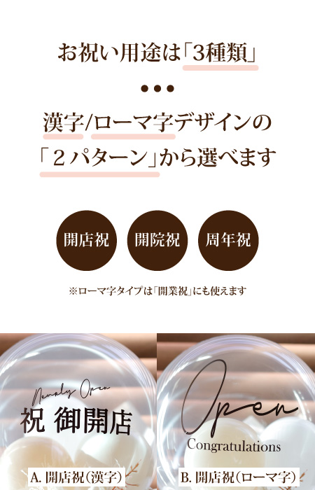 | 用途 | 開店祝い 周年祝い 開院祝い 開業祝い オープン祝い 新事務所設立 祝電 バルーン電報 |