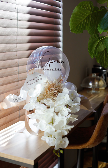 | セット内容 | ・バルーン大×1 ・バルーン小×5 ・胡蝶蘭(造花)×3 ・花束(造花)×1 ・立札×1 |