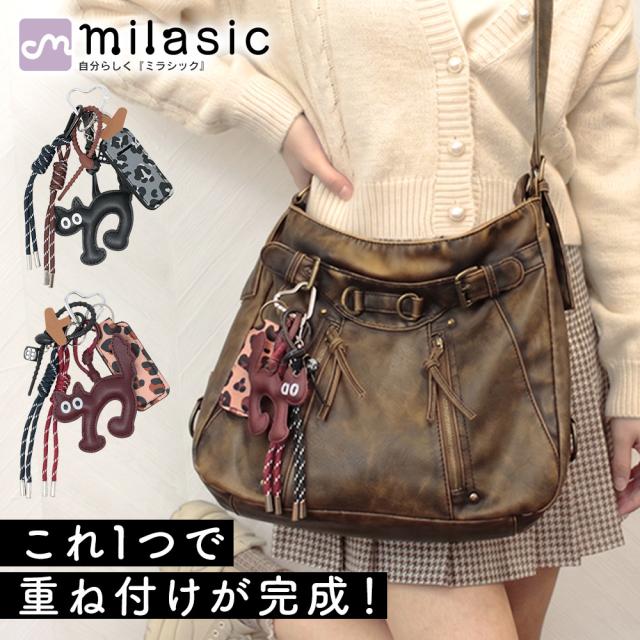 【MILASIC公式】リップケース付き バッグチャーム ねこモチーフ パラコード レディース かわいい おしゃれ カラビナ付き リップホルダー 口紅ケース バッグアクセサリー じゃらじゃら ぷっくり 編み込み 外付け 鍵 スマホ アレンジ 重ね付け 華やか プレゼント