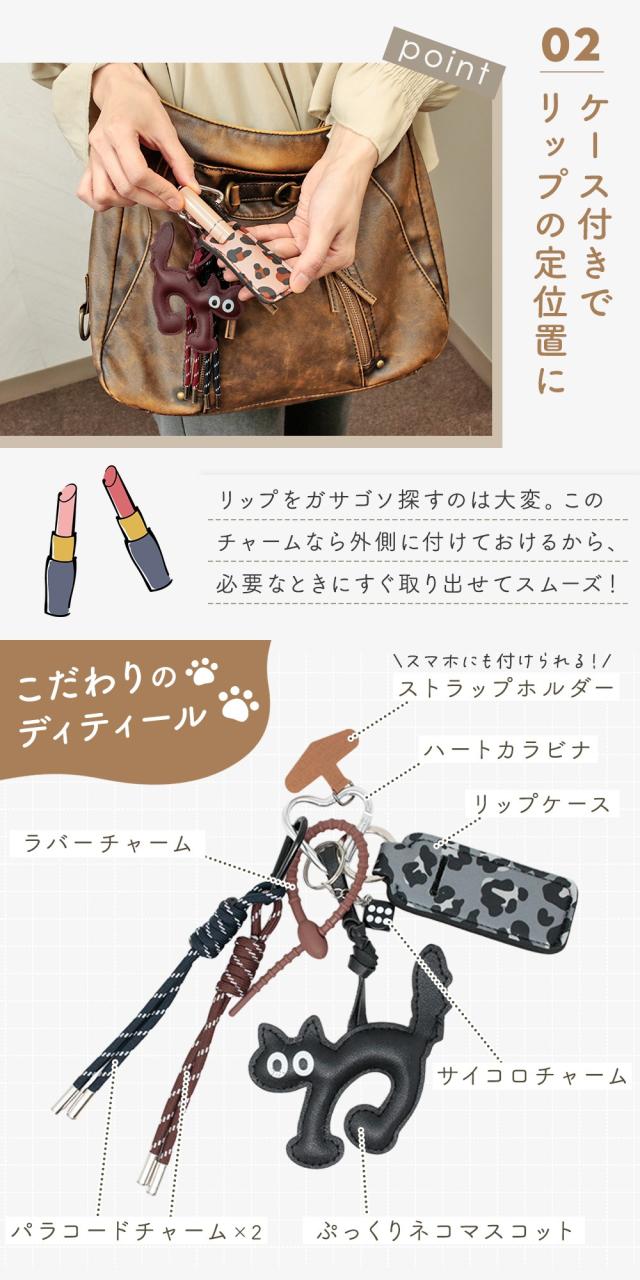 バッグチャーム/キーホルダー/チャーム/バッグアクセサリー/キーチャーム/キーリング/ストラップ/ストラップホルダー/リップケース/リップホルダー/リップ収納/口紅ケース/リップクリームケース/リップクリームホルダー/カラビナ/ハートカラビナ/スマホストラップ/スマホ取り付け/鍵/猫/ネコ/ねこ/猫モチーフ/アニマル/マスコット/ラバーチャーム/パラコード/編み込み/レザー調/フェイクレザー/おしゃれ/かわいい/大人かわいい/レディース/女性/女の子/カジュアル/華やか/存在感/じゃらじゃら/ぷっくり/ワンポイント/外付け/バッグ装着/サッと取り出せる/ギフト/プレゼント