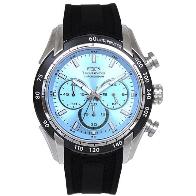 腕時計 メンズ ウォッチ テクノス TECHNOS T6C42SI クロノグラフ 24時間計 シリコン ラバーベルト 送料無料 クォーツ アイスブルー 文字盤 ブラックベルト 時計 クロノ モデル