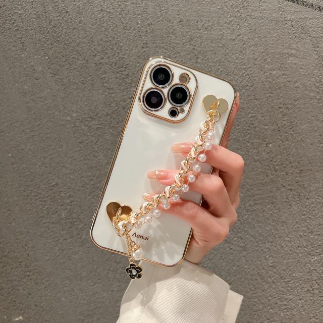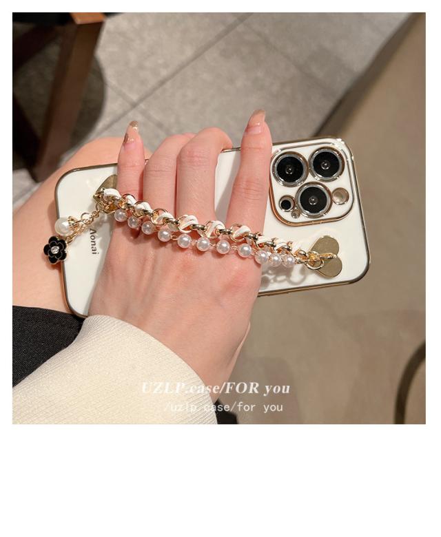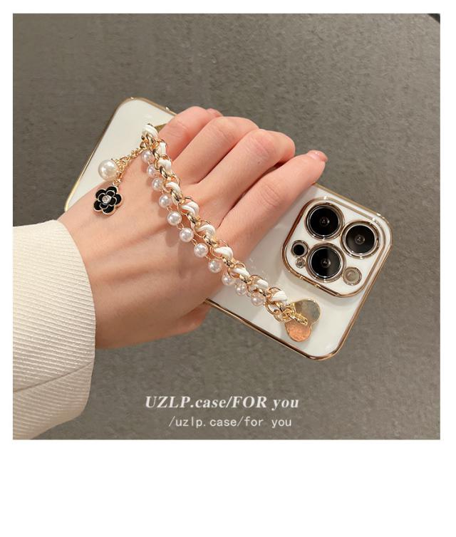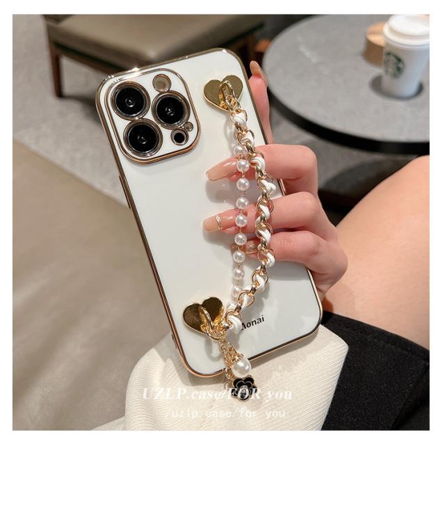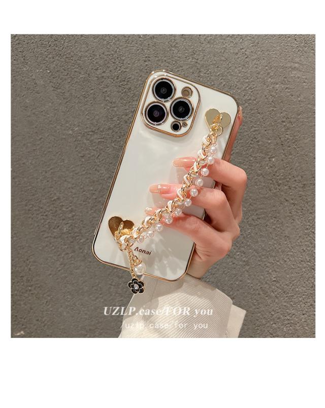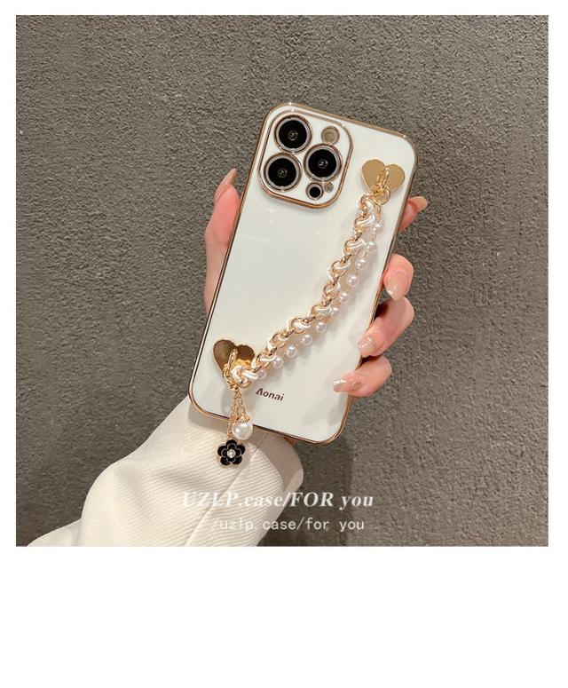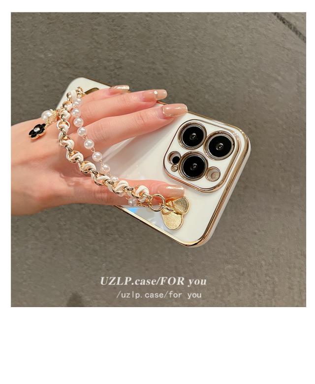 スマホケース軽贅沢無穴愛真珠ブレスレットはiphone16proメッキリンゴ15promax/13高級感12ソフトゴム14携帯ケース16全包転倒防止保護カバー女神ネット赤