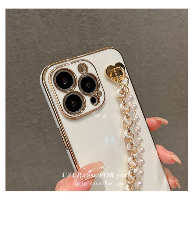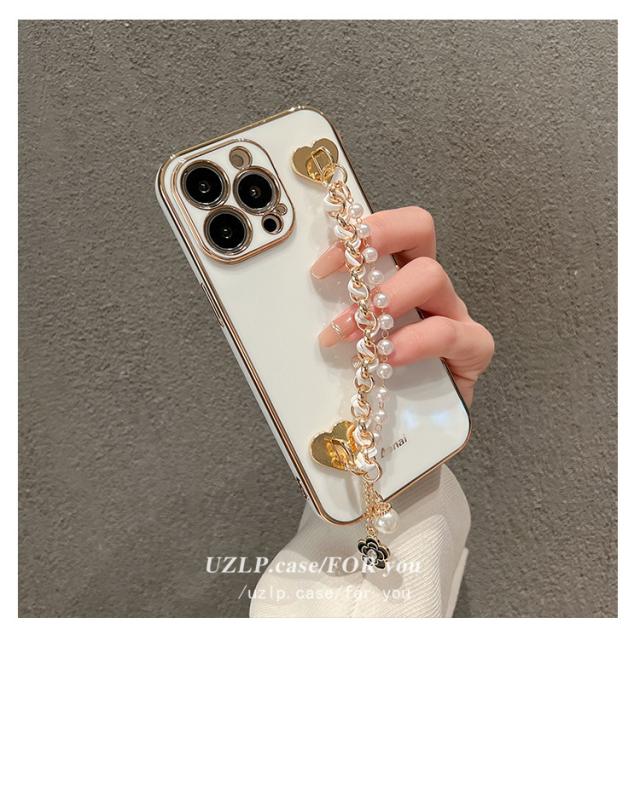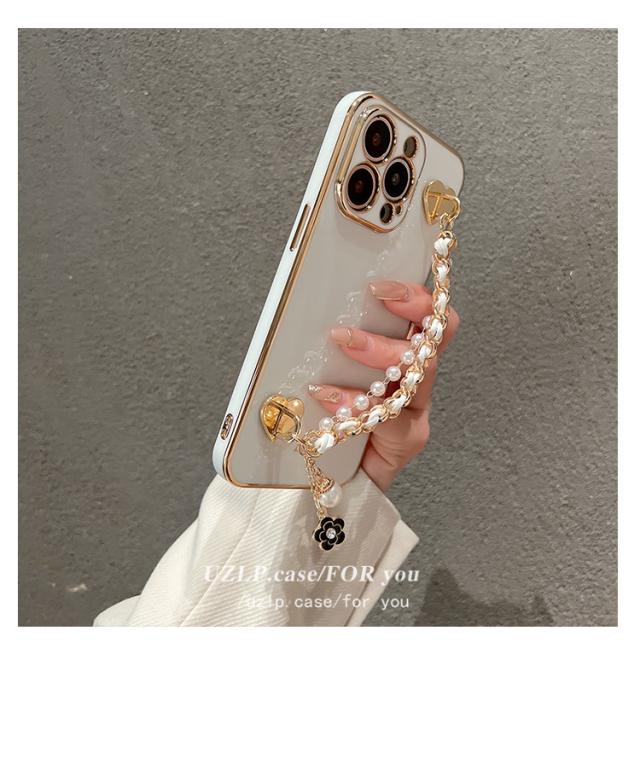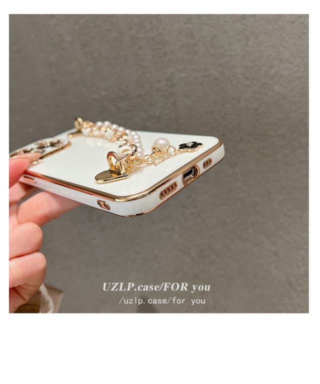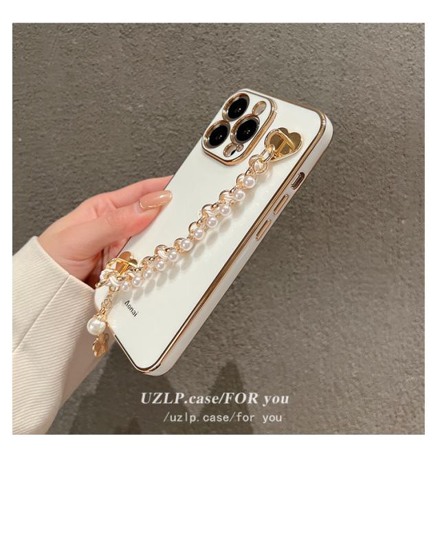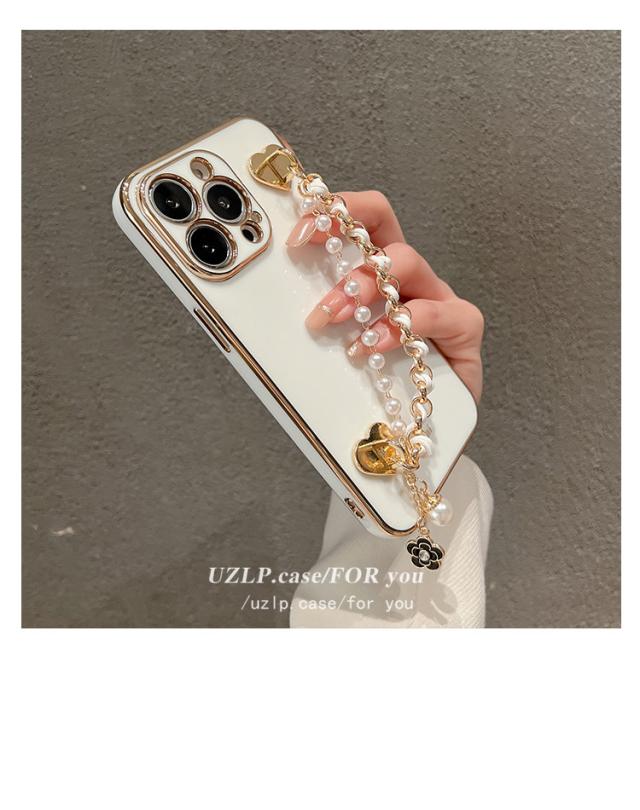 スマホケース軽贅沢無穴愛真珠ブレスレットはiphone16proメッキリンゴ15promax/13高級感12ソフトゴム14携帯ケース16全包転倒防止保護カバー女神ネット赤