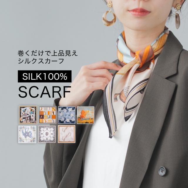シルクスカーフ シルク100% スカーフ 52×52cm 正方形 絹 レディース ストール 花柄 フラワー 馬 柄 春 夏 秋 冬 日よけ 日焼け対策 首 uv対策 母の日 誕生日 通勤 おしゃれ きれいめ 上品 プレゼント ギフト ストール ラッピング可 silk scarf