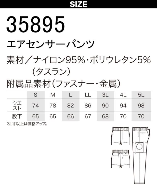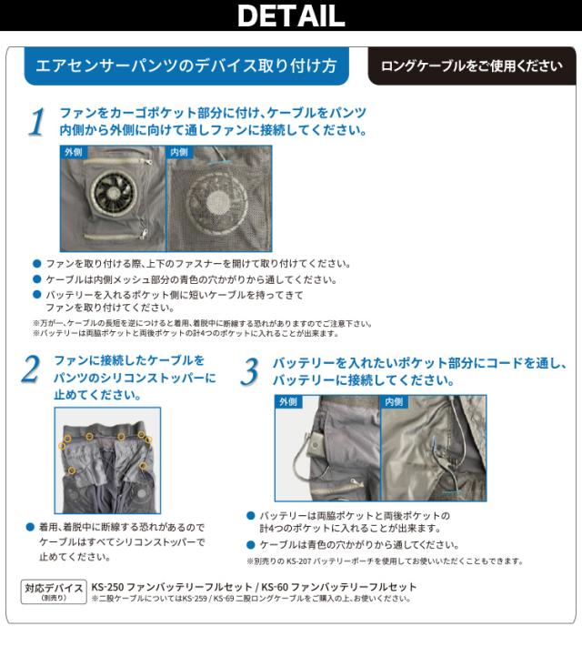2026年新商品 電動ファン付きパンツ クロダルマ エアーセンサーパンツ 空調作業ズボン ケーブルレスファンバッテリーセット 35895/KS-50 最大16時間稼働 空調作業服