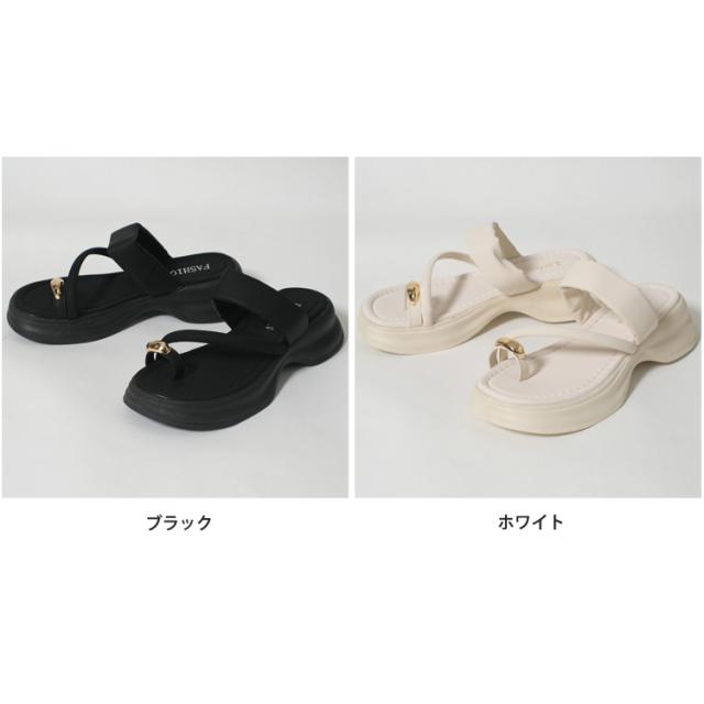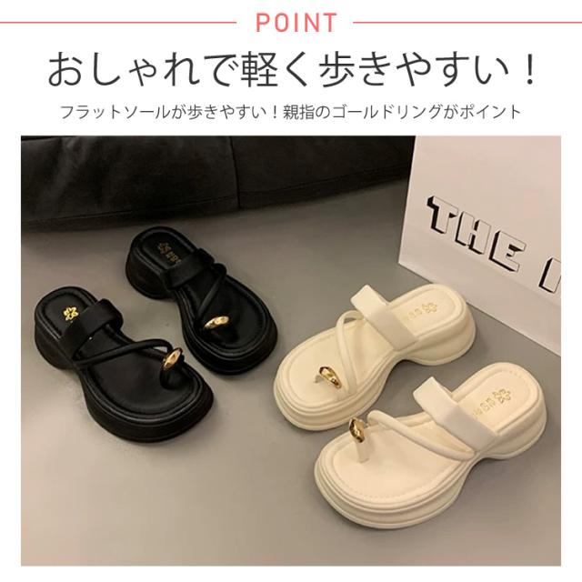 全品送料無料一部除く メタルサムリング ボリュームソールトングサンダル【即納】シューズ 靴 サンダル 夏サンダル フラットサンダル スリッパサンダル PUサンダル プール 海 リゾート 軽量 歩きやすい レディース 韓国 流行り トレンド かわいい