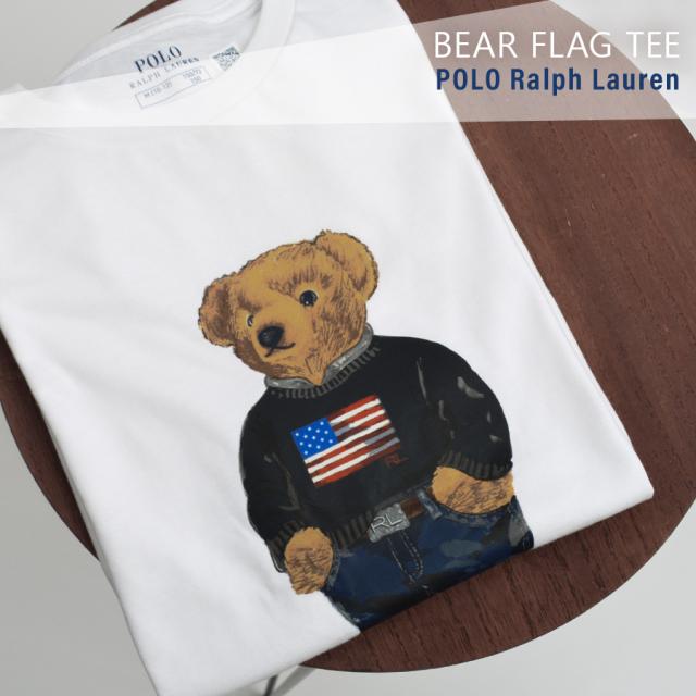 ラルフローレン Tシャツ メンズ レディース ベアー フラッグ 半袖Tシャツ ポロベア クルーネック プリント ブランド POLO RALPH LAUREN ロゴ 綿100% 白 P00508【ボーイズサイズ】