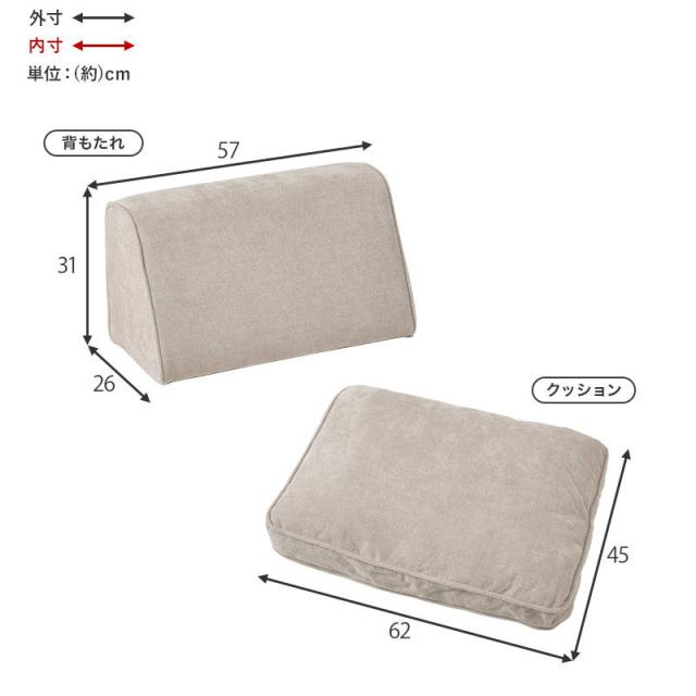 サイズ(約):背もたれ:(約)幅57×奥行26×高さ31cm、クッション:(約)62×45cm