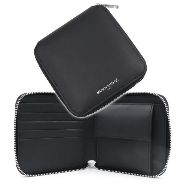MAISON KITSUNE メゾンキツネ ラウンドファスナー二つ折り財布(小銭入れ付き) QU05701LR0072 / MAISON KITSUNE WALLET ブラック 2026春夏新作