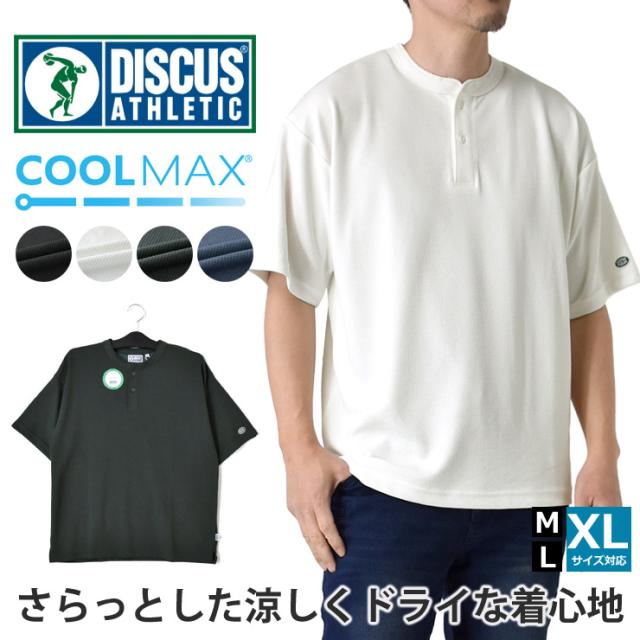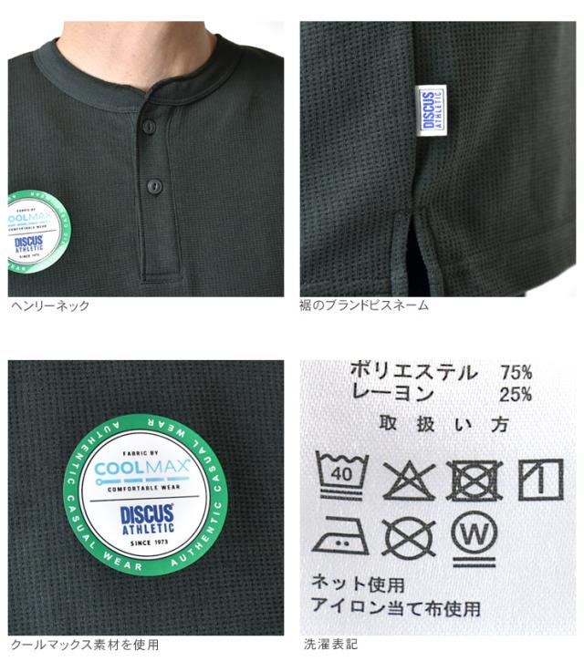 ディスカス アスレチック Tシャツ メンズ 半袖 ヘンリーネック COOLMAX クールマックス ワッフル ドライ サーマル 無地 夏服 トップス DISCUS ATHLETIC おしゃれ【C3C】【送料無料】【メール便2】 春新作
