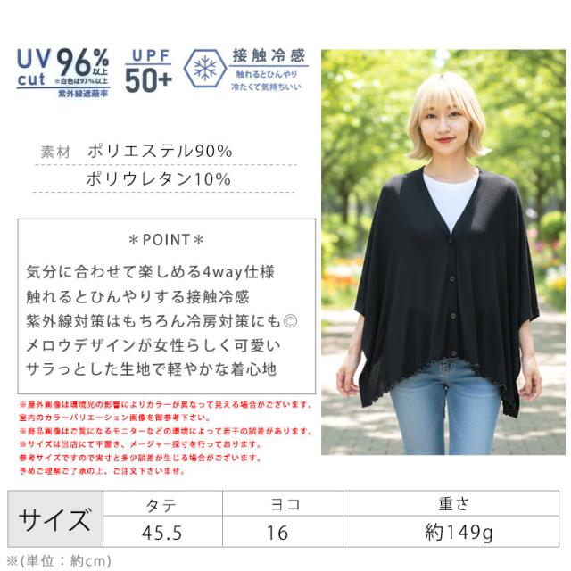 4way ボレロ カーディガン レディース 春夏 薄手 UV 冷感 ゆったり 大きいサイズ 長袖 七分袖 前開き ドルマン ポンチョ サマーカーディガン 涼しい きれいめ おしゃれ メロウ 通勤 通学 オフィス 旅行 白 黒 青 グレー