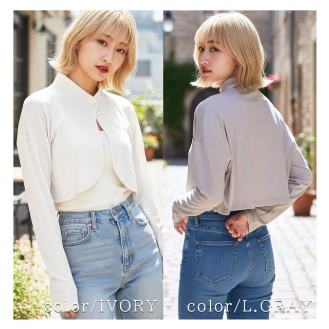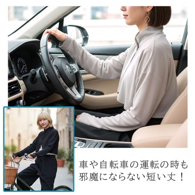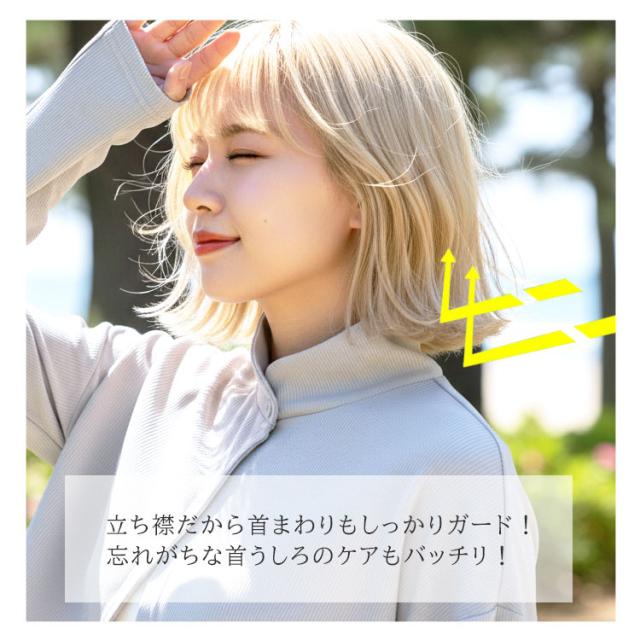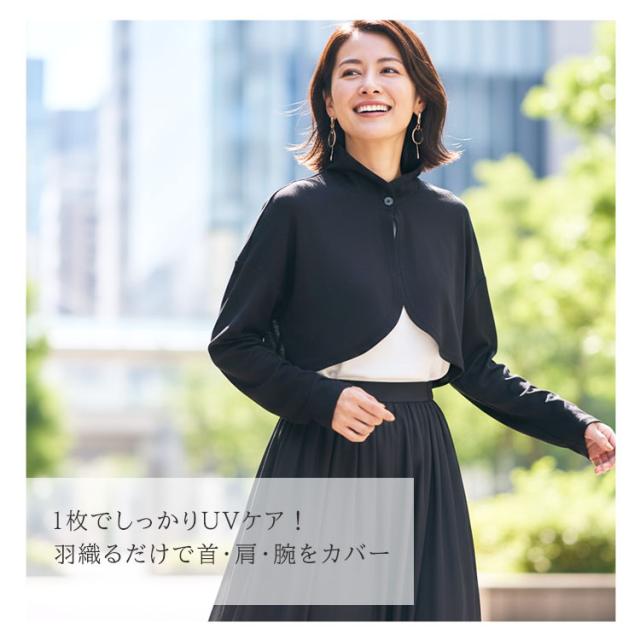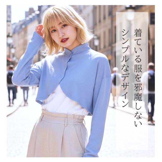 ・長めの襟と袖でうなじから手の甲までしっかり覆うボレロタイプ