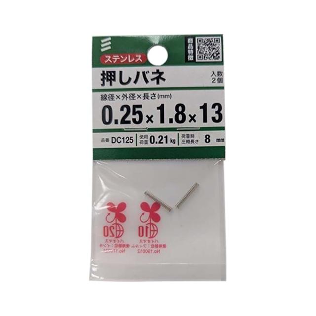 | 品名 | 押しバネ 0.25×1.8×13mm 2本入 DC125 |