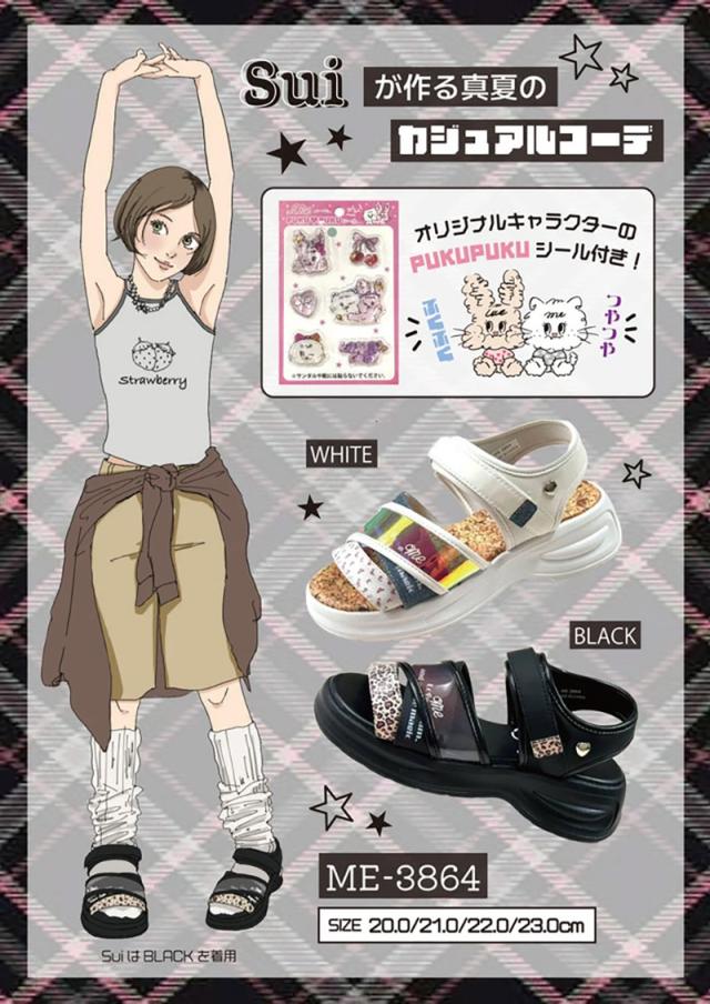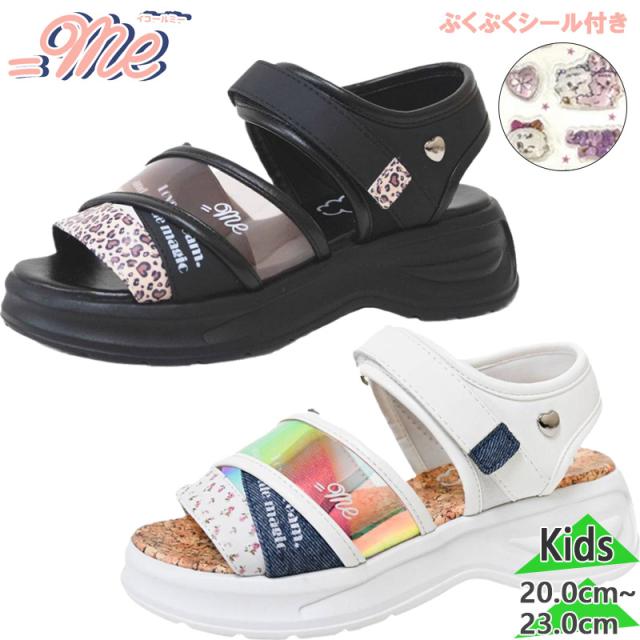 イコールミー ジュニア キッズ ガールズ サンダル 女の子 靴 シューズ スポーツサンダル スポサン ぷくぷくシール付き 可愛い おしゃれ ホワイト 白 ブラック 黒 送料無料 ME ME-3864