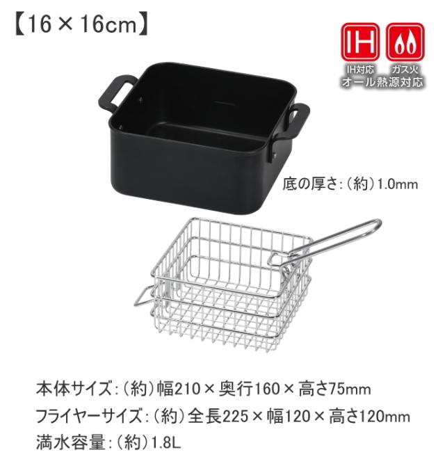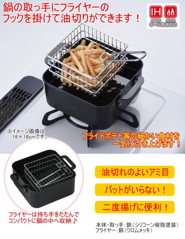 鉄製正方型揚げ鍋 16×16cm 鍋に掛けれるフライヤー付 HC-1328 送料無料 鉄製 鉄鍋 鍋 正方形 フライヤー付 油切り ガス火・IH対応 オール熱源対応 揚げ物 フライドポテト 鉄分 キッチン 料理 調理器具 キッチン用品 新生活 一人暮らし パール金属