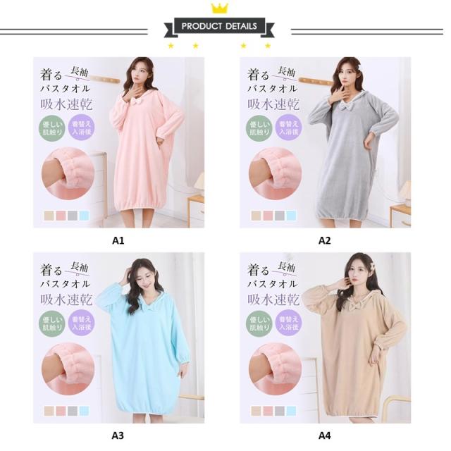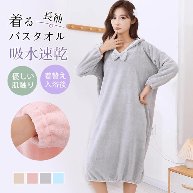 バスローブ 湯上がりタオル ワンピース 着るバスタオル 入浴後 ワンピース 吸水 着替え 温泉 サウナ 長袖 速乾 スイミング プール海ビーチ 母の日